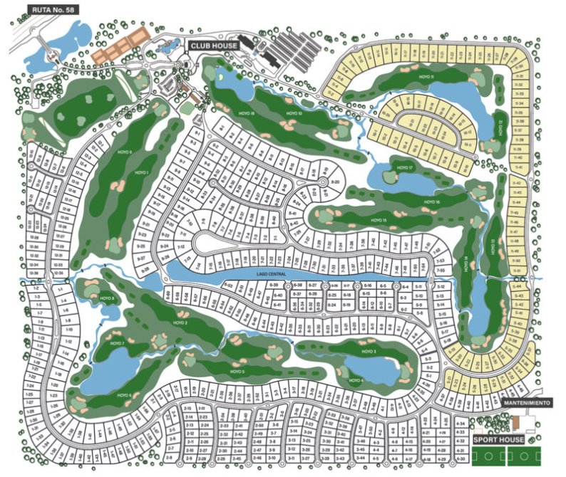 La cancha de golf es el corazón del barrio. La mayoría de los lotes disfrutan de esta vista como una extensión de su propio terreno.