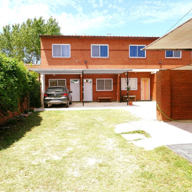 CASA 1: al frente, la misma cuenta con 3 ambientes amplios distribuidos de la siguiente manera: dos habitaciones, un baño, amplio comedor y cocina integrada, lavadero patio garaje para un auto y parrilla.